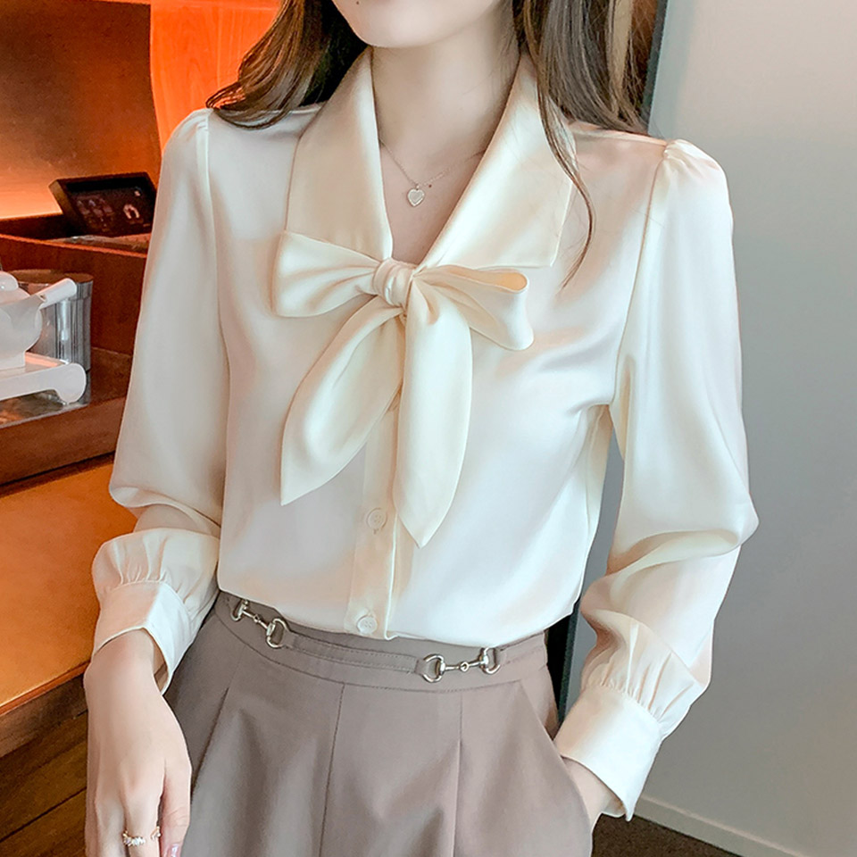 [예쎄] 리본 타이 브이넥 카라 블라우스(S4FBL011A)