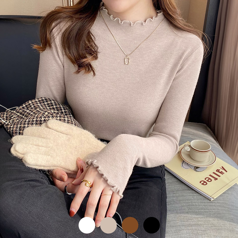[예쎄] 슬림 물결 반폴라 골지 이너 니트(S4FKN003A)