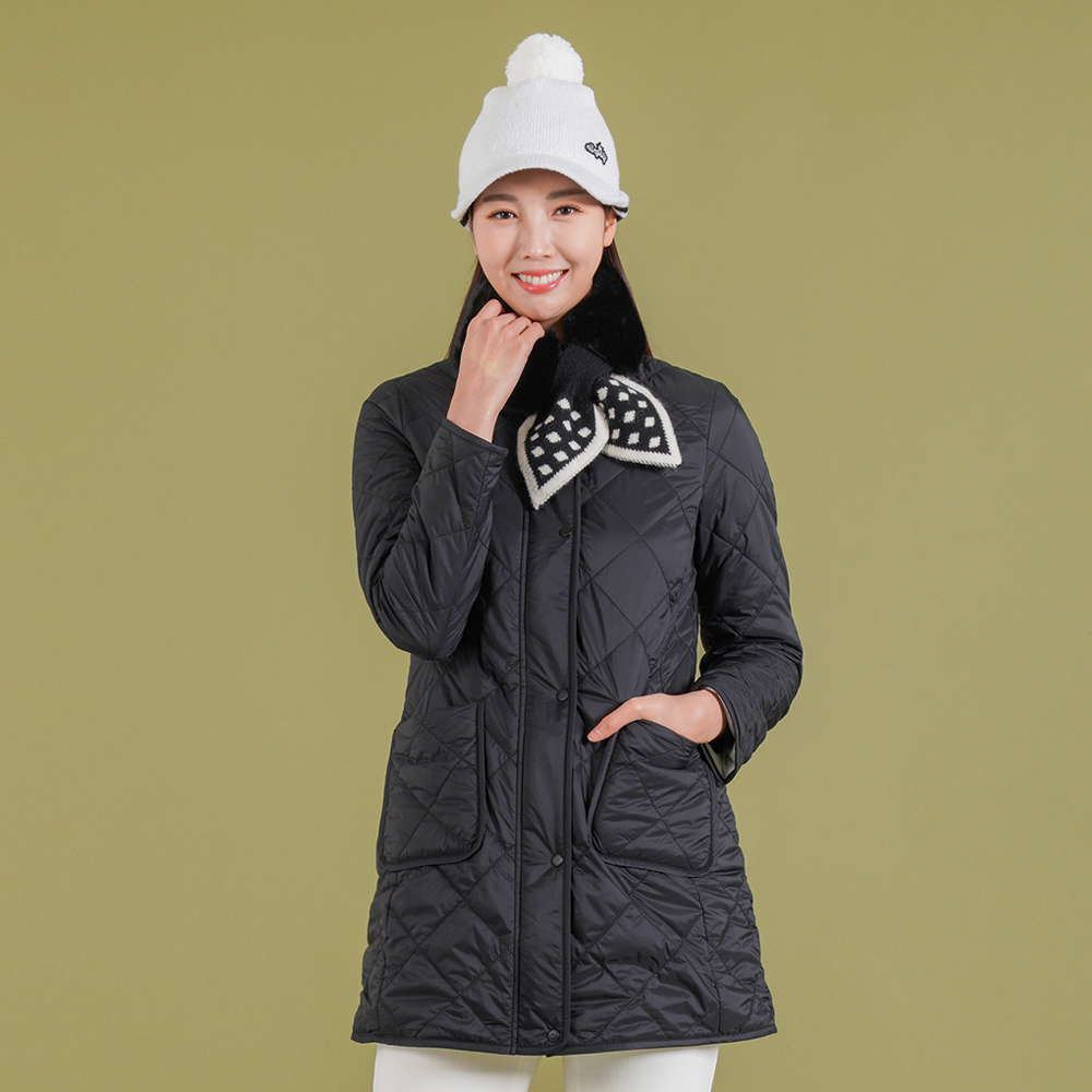 여성 테잎 포인트 중기장 패딩 점퍼_6H81304