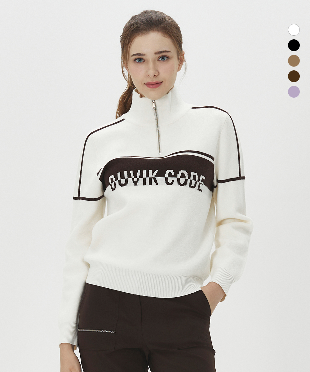듀빅 여성 하이넥 배색 집업 니트스웨터 DD3WSW251