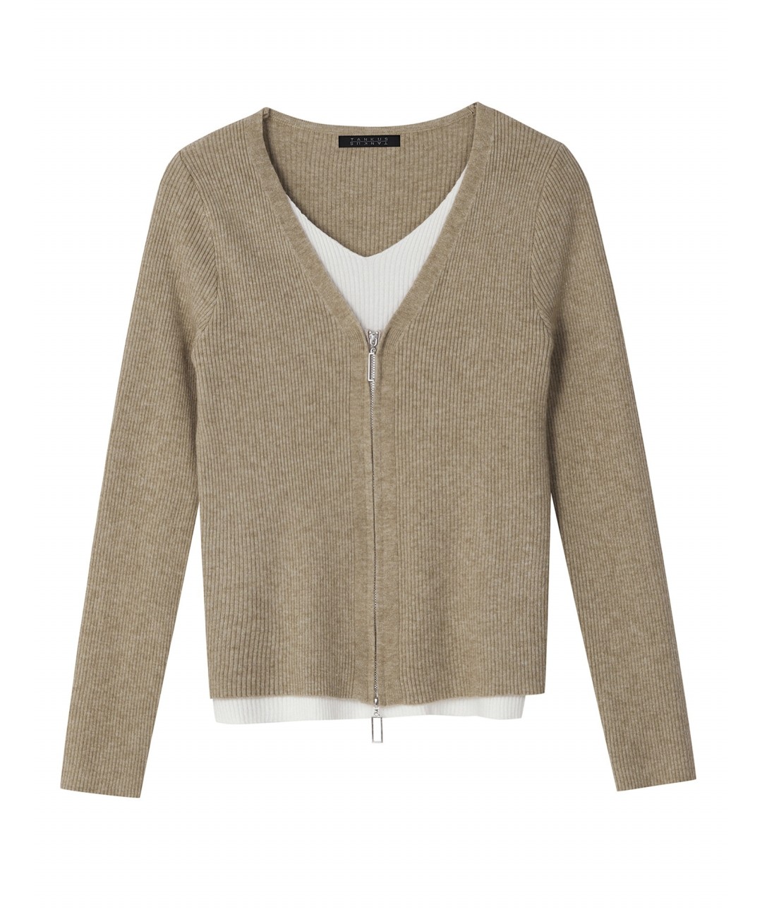 브이넥 투웨이 집업 레이어드 배색 니트 (TW3KP019L0)