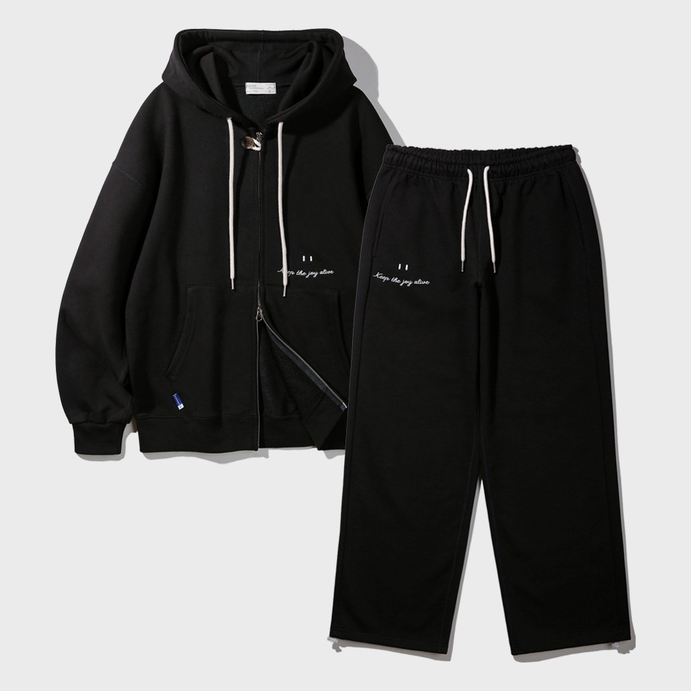 바켄 스마일 자수 로고 2WAY 버튼 후드집업 세미와이드 팬츠 셋업 BK7985_9985