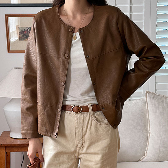 (주문폭주!! 인기상품!! 뉴컬러추가!!) 라운드넥 레더 자켓_3컬러