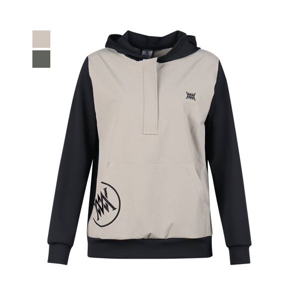 럭스골프 여성 반집업 배색 후드 긴팔 골프셔츠 MW4A620W