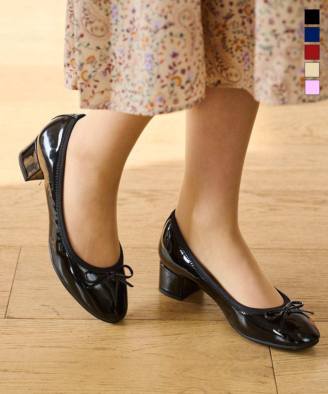 미르바네스슈즈 팔레트 리본 유광 플랫슈즈