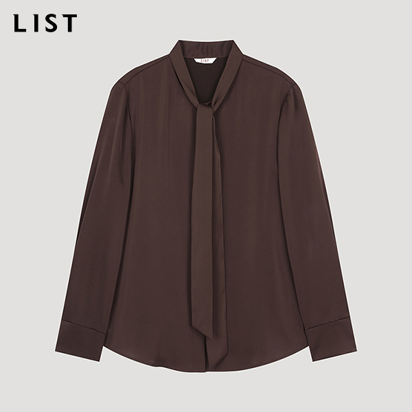 라운드넥 타이 블라우스_TWWBLO82020_BR