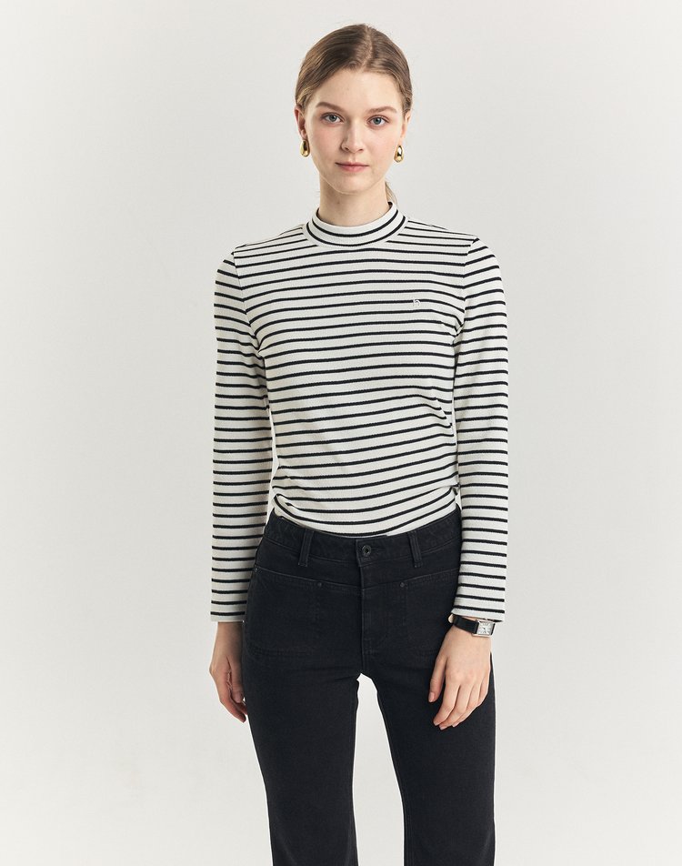 [헤지스 여성]스트라이프 하프넥 티셔츠 아이보리_HSTS4D906IV