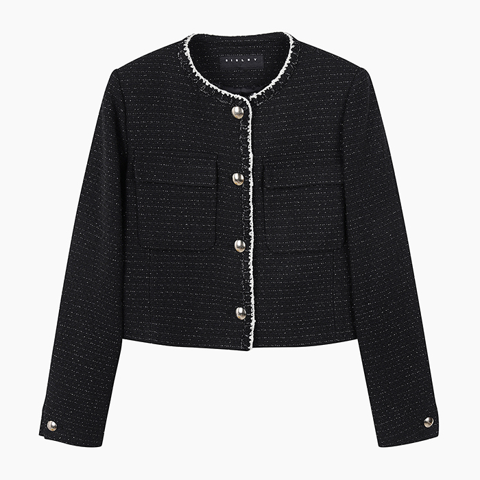 [시슬리]에코 판도라 트위드 자수트리밍 자켓_SAJK33461BK