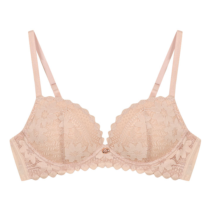 여성 플라워 패턴 레이스 노와이어 브라_베이지