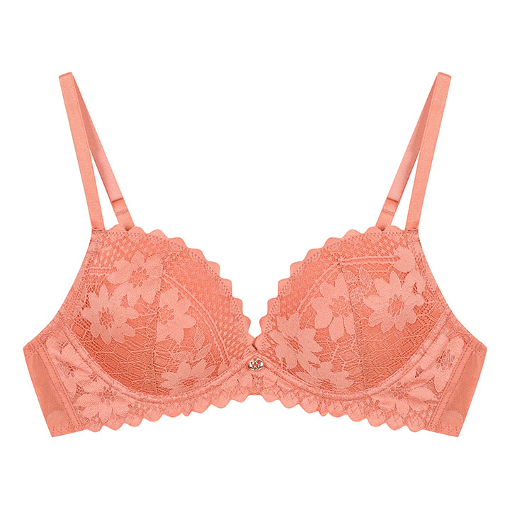 여성 플라워 패턴 레이스 노와이어 브라_살몬