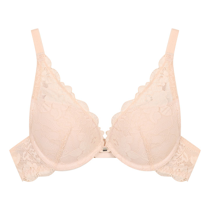 여성 패드 탈부착 로즈 패턴 레이스 브라_베이지