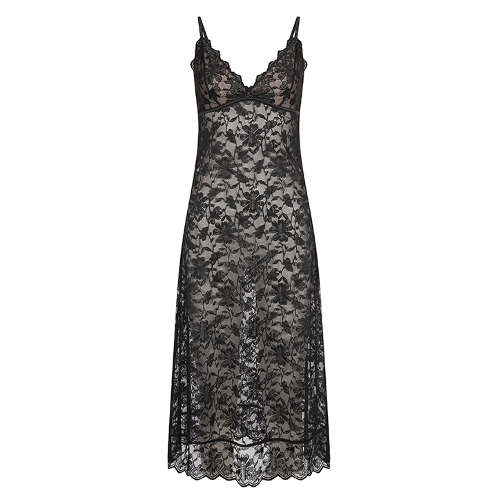 여성 끈나시 시스루 레이스 맥시롱 슬립_블랙