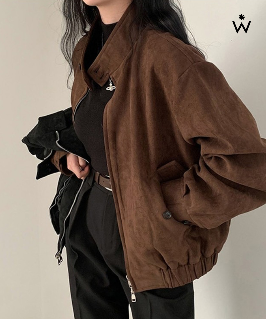 하이넥 스웨이드 벨벳 밴딩 집업 자켓 (WIBCJK040)
