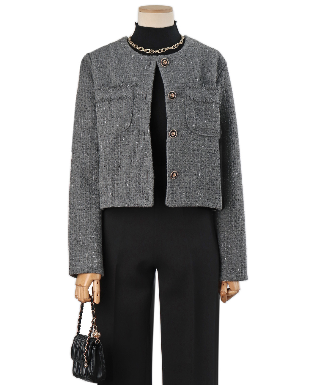 [쉬즈넘버나인]샌더 라운드 프린지 트위드 자켓 [안감없음]