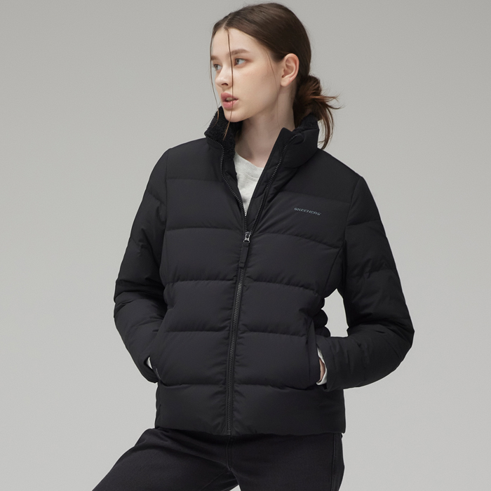 스케쳐스 여성 내추럴 웜 플리스 헝가리 화이트 다운 자켓(블랙)