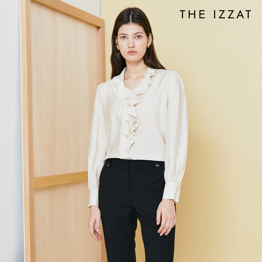 (더아이잗) 쥬얼 버튼 러플 블라우스 IPAA0BL071