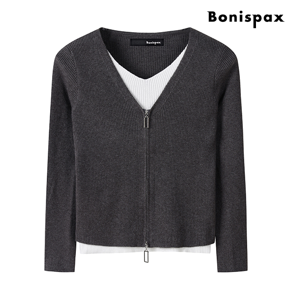 페이크 레이어드 V넥 투웨이 긴팔 니트 (XO3KT010L0)