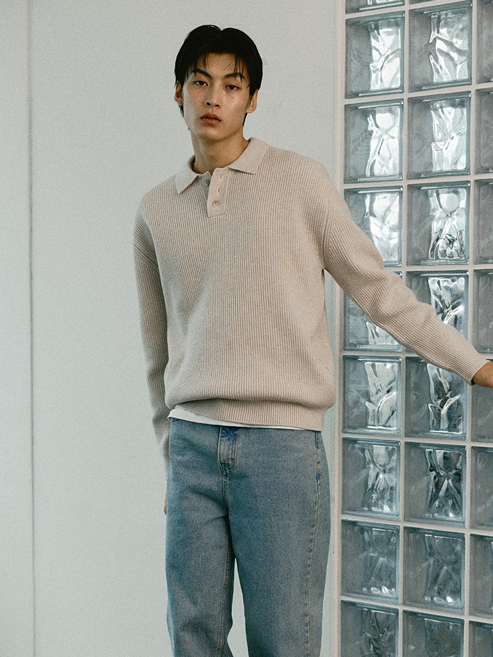 캐시미어 블렌딩 하찌 버튼 카라 니트 베이지 L24W302BG