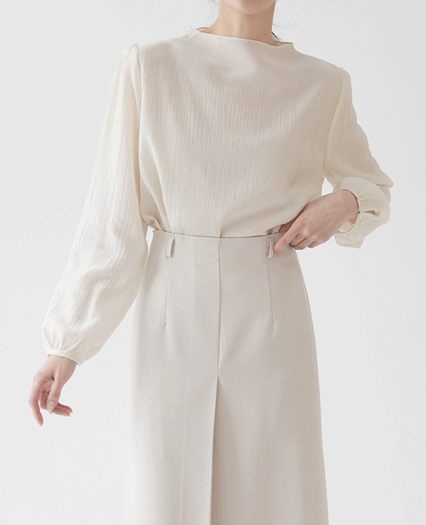 [단독] 비에고 하프넥 플리츠 긴팔블라우스 (3color)