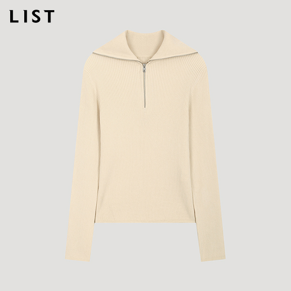 울 반집업 카라 리브 니트_TSKPOO82780_OT