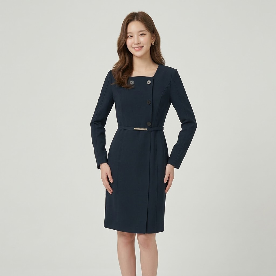 [꼼빠니아]더블 버튼 슬림 원피스-CW22OB1207354B