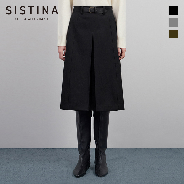 벨트 장식 인버티드 플리츠 스커트_AWWSKO41060