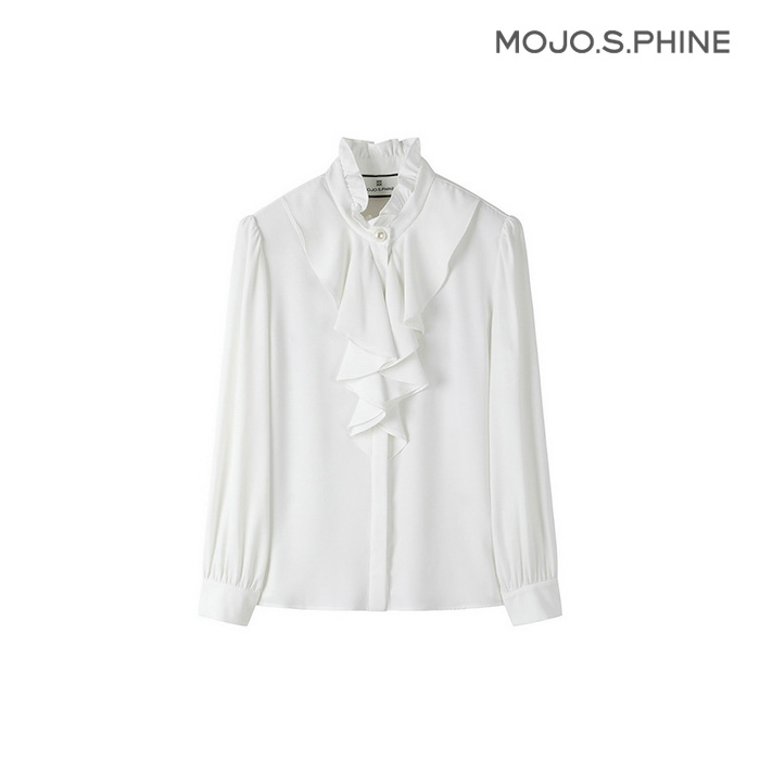[모조에스핀] 하이넥 러플장식 블라우스 IV_S244MSC016
