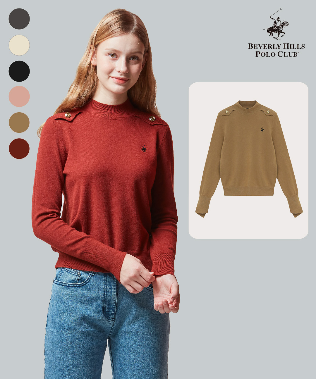 [비버리힐스폴로클럽]여성 숄더 버튼 반목 니트 TK301