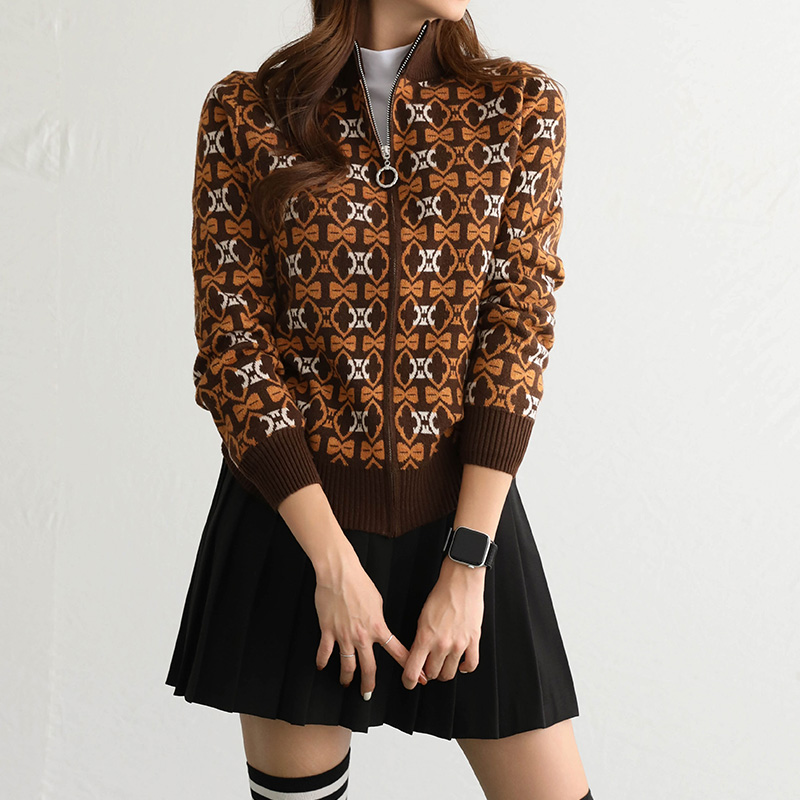 [패턴퀸 GOLF] 목폴라 패턴 니트 집업 66504