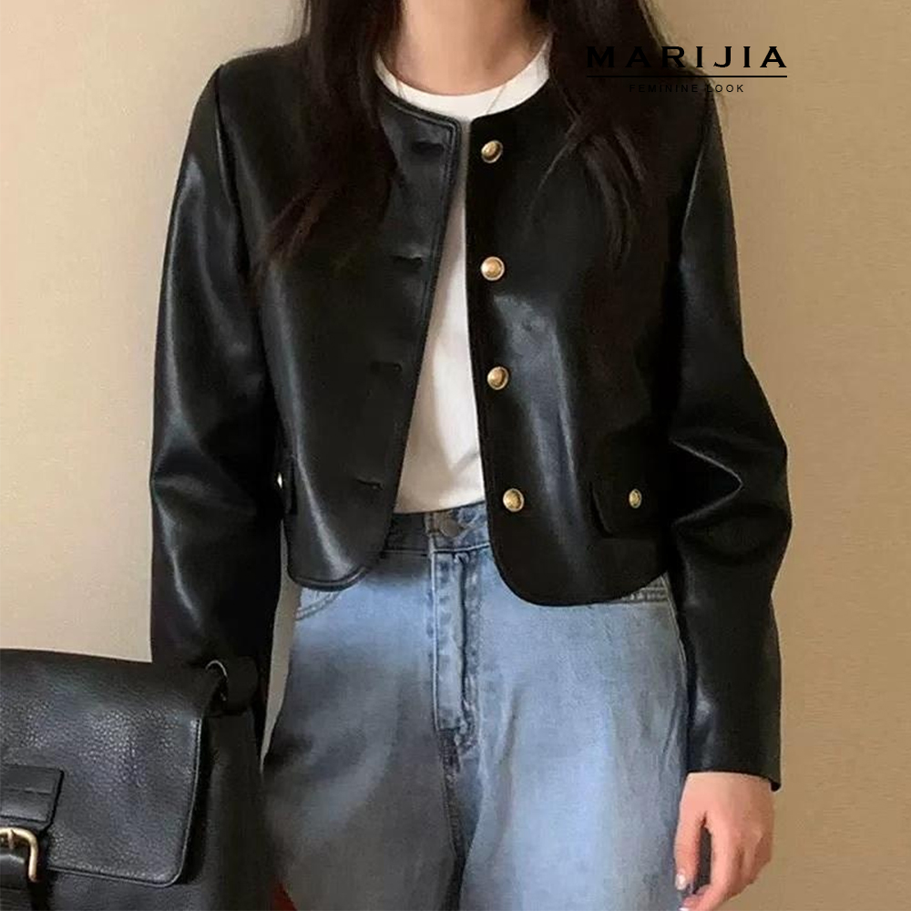 [MARIJIA] 골드 버튼 페이크 레더 자켓_MJKA32044
