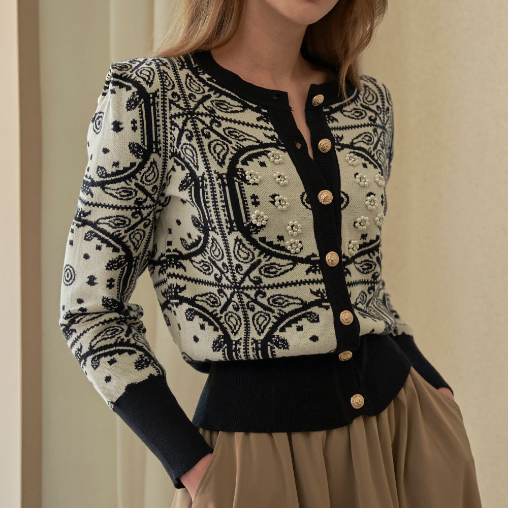 피렌체 패턴 큐빅장식 볼륨숄더 가디건 LN03CD470