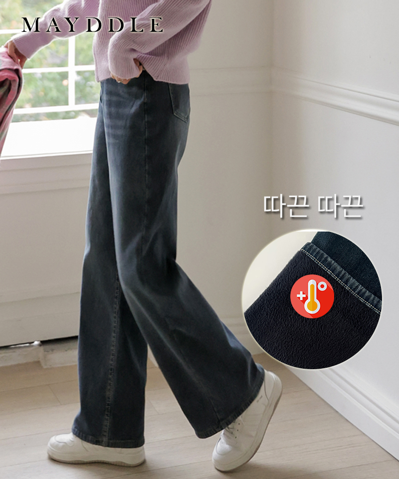 [영상핏]2TYPE 포근융기모 와이드팬츠 / 도톰 속기모 융털 스판 텐션 숏 롱 진청 흑청 데님 와이드핏 체형커버 기모바지 겨울청바지 따뜻한바지 딸선물 두꺼운 통넓은 한파 방한바지