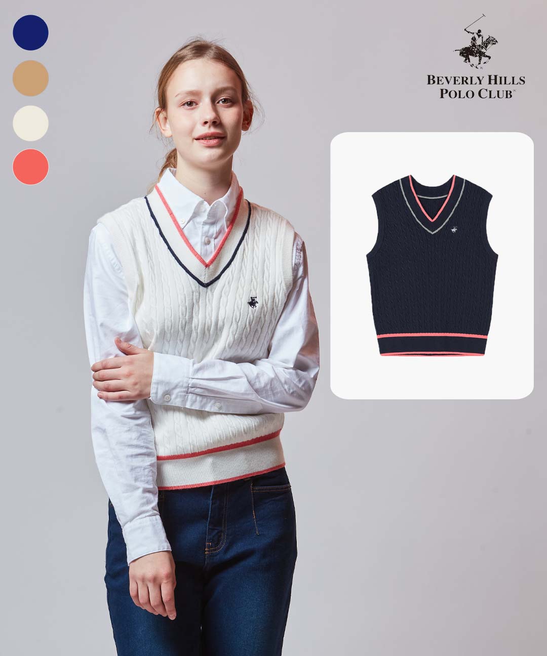 [비버리힐스폴로클럽]여성 배색 포인트 케이블 조끼 TK062