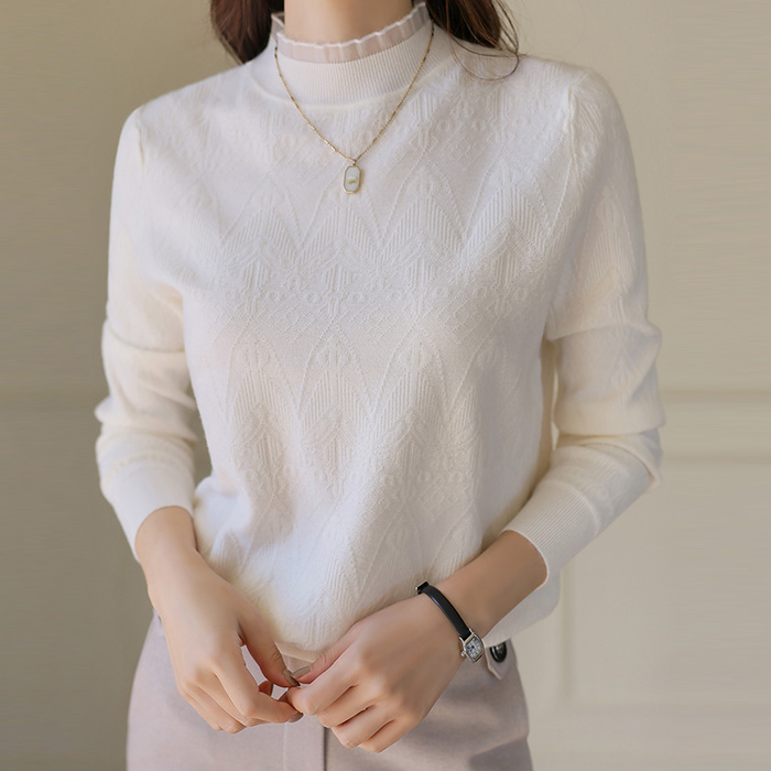 [스타일온미] 레니피 눈꽃 쟈가드 에스닉 텍스쳐 프릴넥 니트