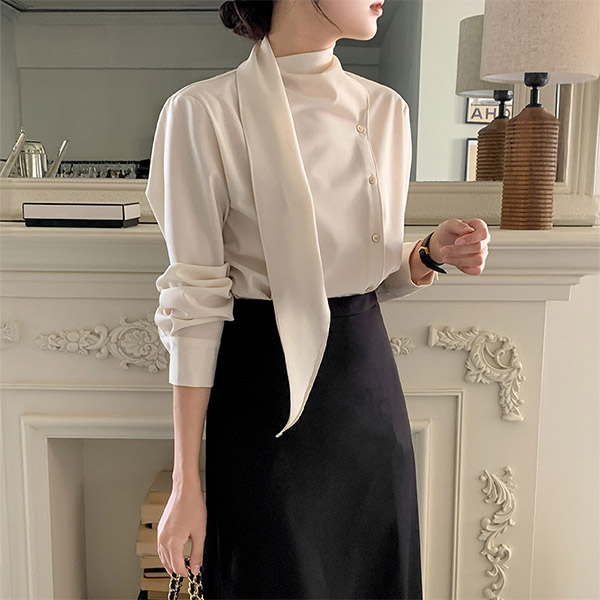 [프롬리리컬] (타이포인트/고급미♥) 아넬리 타이 버튼 긴팔 블라우스 bs8052