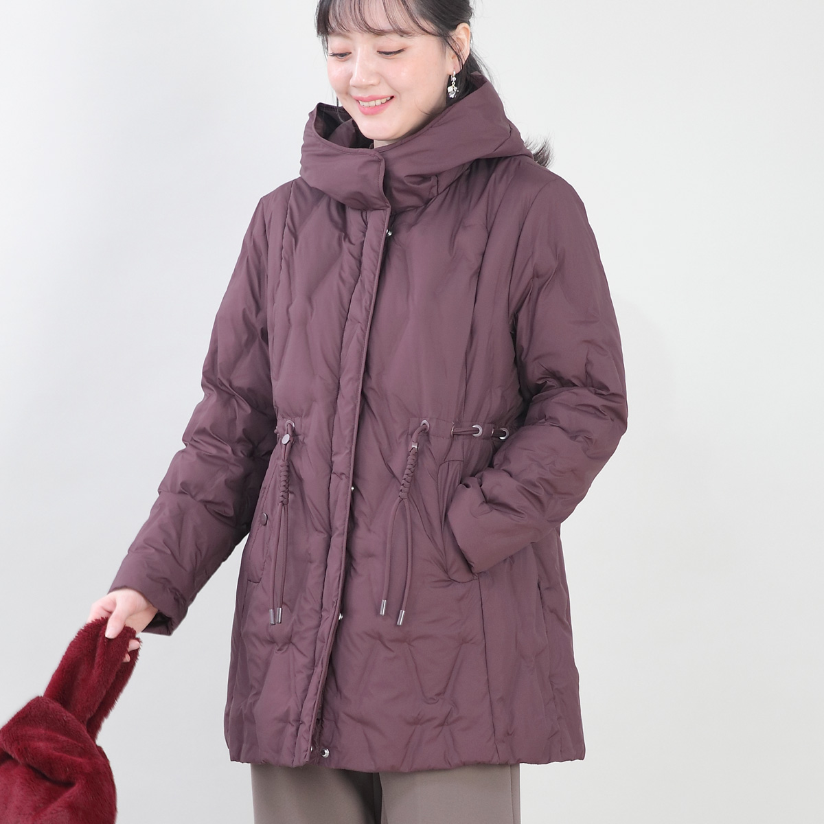 루프 오리털 후드 허리스트링 여성 겨울 하프 패딩 점퍼 J12405
