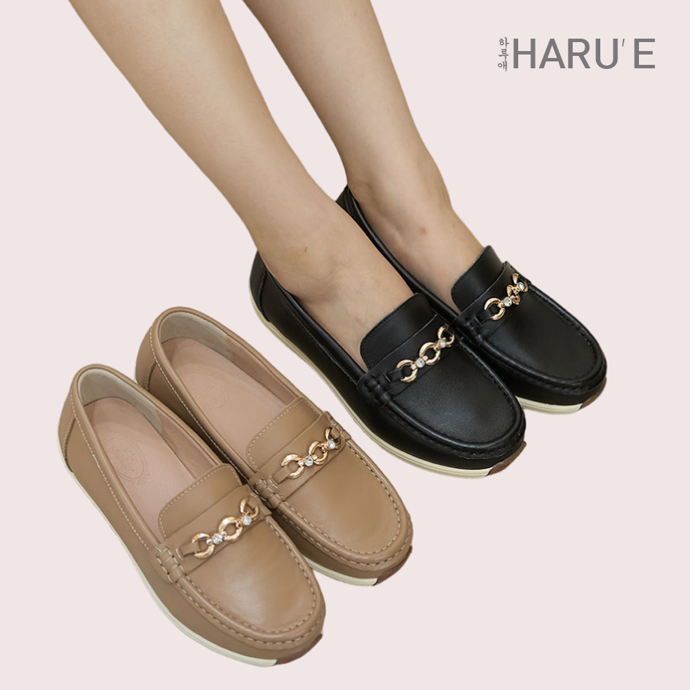 [하루에] 미키 여성 가죽 그레이스 체인 로퍼 3.0cm