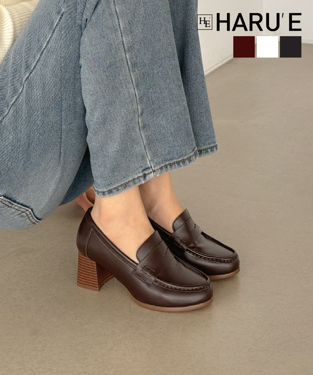 [하루에] 에리 여성 천연가죽 퓨어라인 키높이 로퍼 구두 6cm