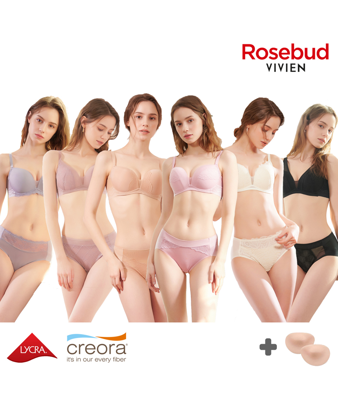 비비안 로즈버드 스킨 앤 누디 브라팬티 7종 패키지 (브라3+팬티3+볼품패드)