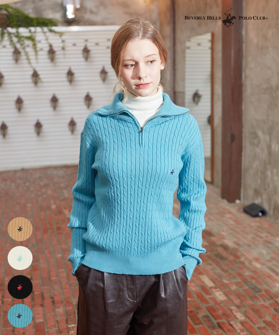 [비버리힐스폴로클럽]여성 케이블 풀오버 반집업 니트 TK400