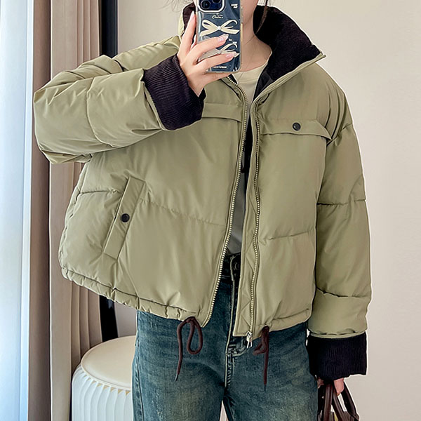 안감 배색 겨울 루즈핏 숏패딩_BI4JP006