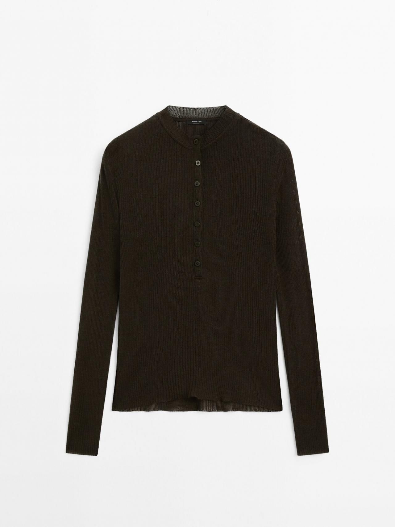 마시모두띠 버튼 울 혼방 티셔츠 6288/581 DARK KHAKI