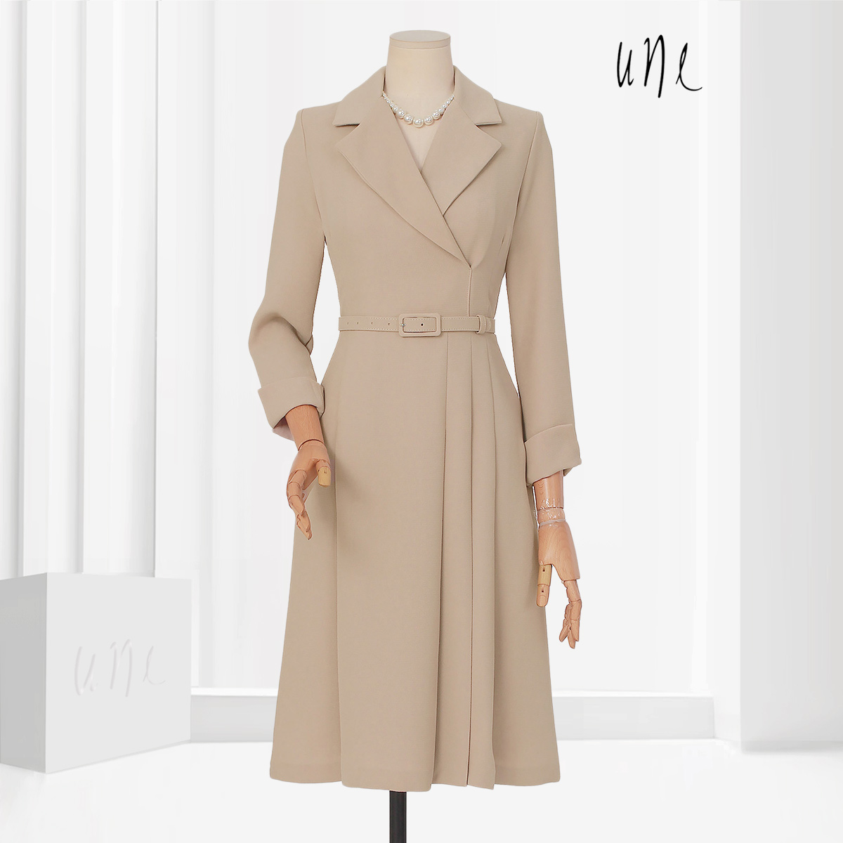 윈(une) [77까지][벨트SET]사이드플리츠 클래식원피스
