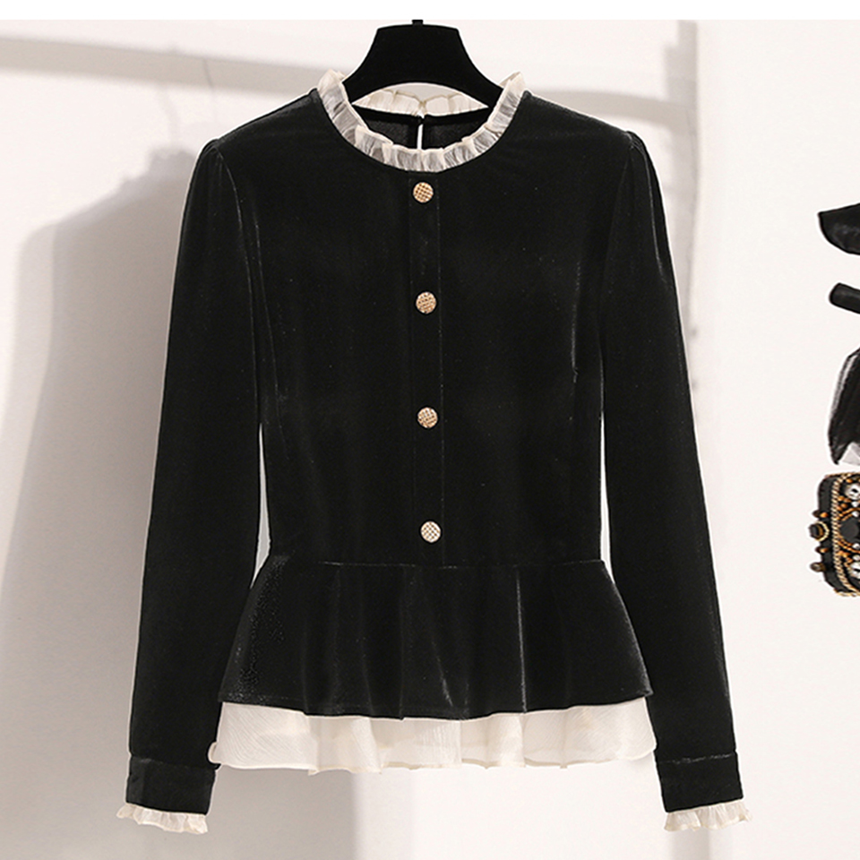 [예쎄] 벨벳 프릴장식 페플럼 블라우스(S4WBL404A)