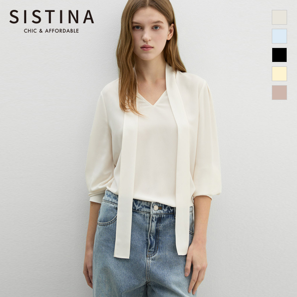 턱 슬리브 타이넥 블라우스_AWWBLP11010