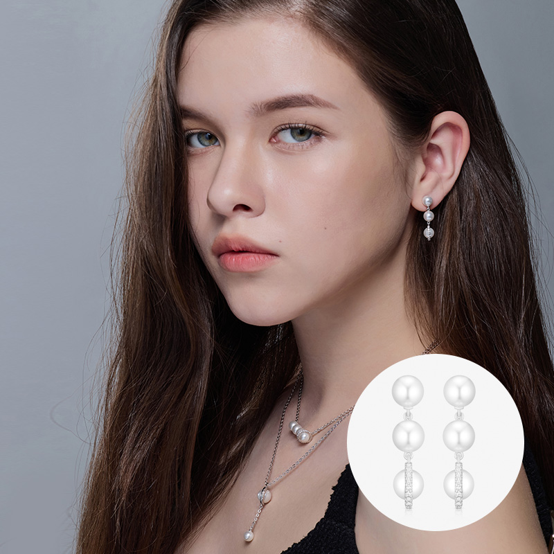 1992 PERLA 스털링 실버 화이트 이어링 A251SE0751WPH