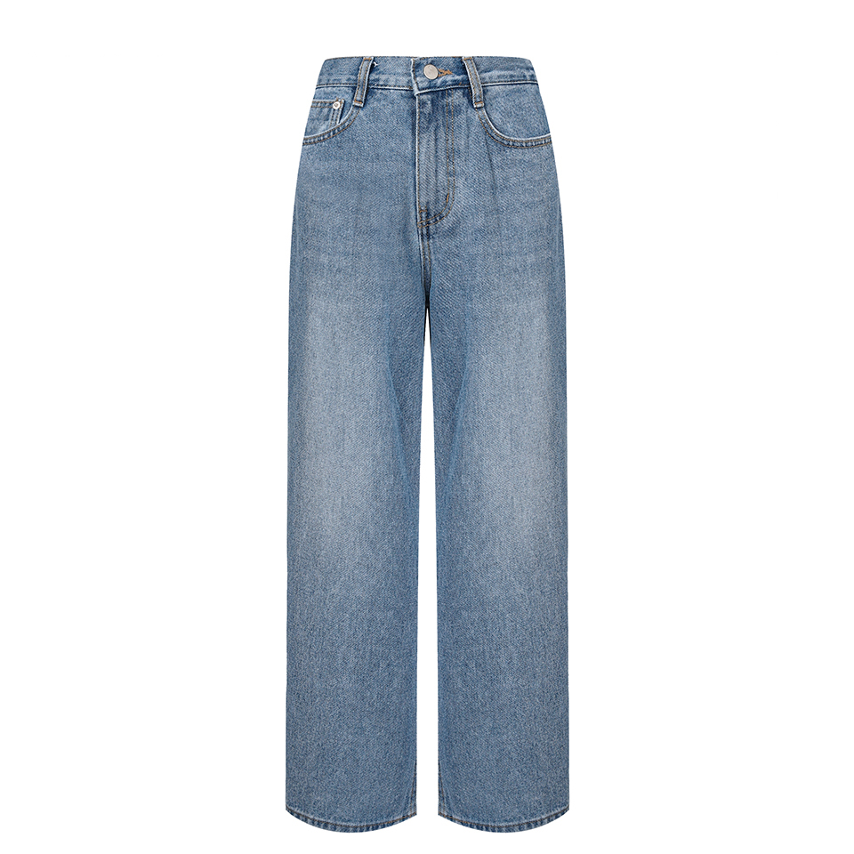 여성 허리 뒷 밴딩 와이드 데님 팬츠