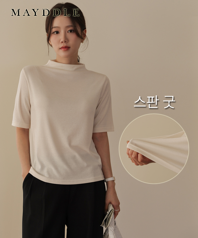[빠른배송]제니반폴라 슬림 티셔츠 / 찰랑 반넥 드레이프 반터틀 반목 부드러운 스판 텐션 신축성 베이직 반소매 무지 이너 레이어드 슬림핏 간절기 레이온 반팔티 크림 메란지 블랙