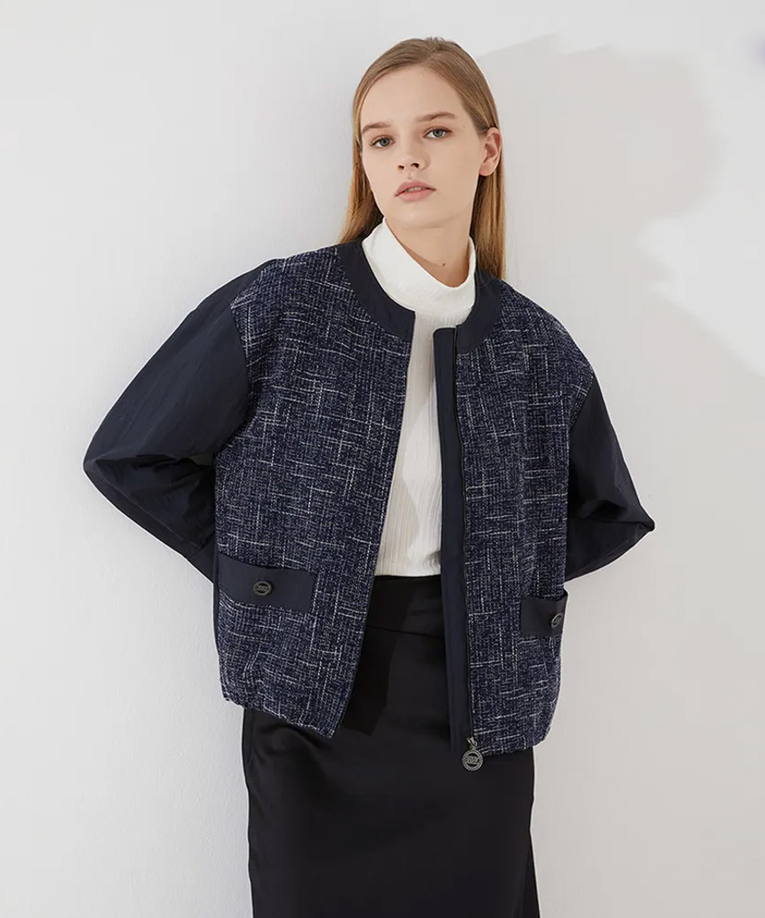 [올리비아로렌] 트위드 배색 블루종 점퍼_VOCCL3S2221