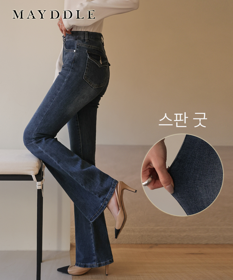 [영상핏]포켓버튼 라인사는 부츠컷데님팬츠 / 스판 텐션 신축성 편한 슬림핏 하이웨이스트 밑위 긴 블랙 연청 진청 화이트 사계절 청바지 날씬핏 다리길어보이는 바지 봄 여름 가을
